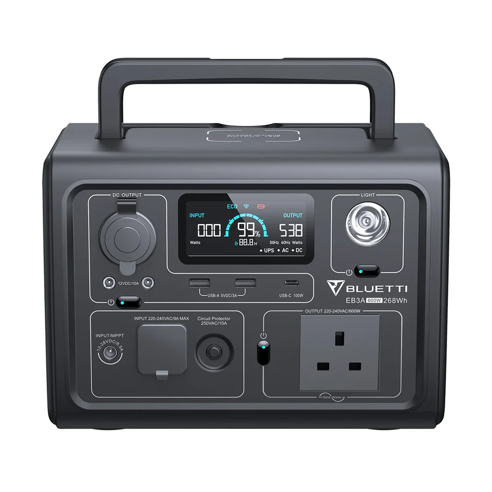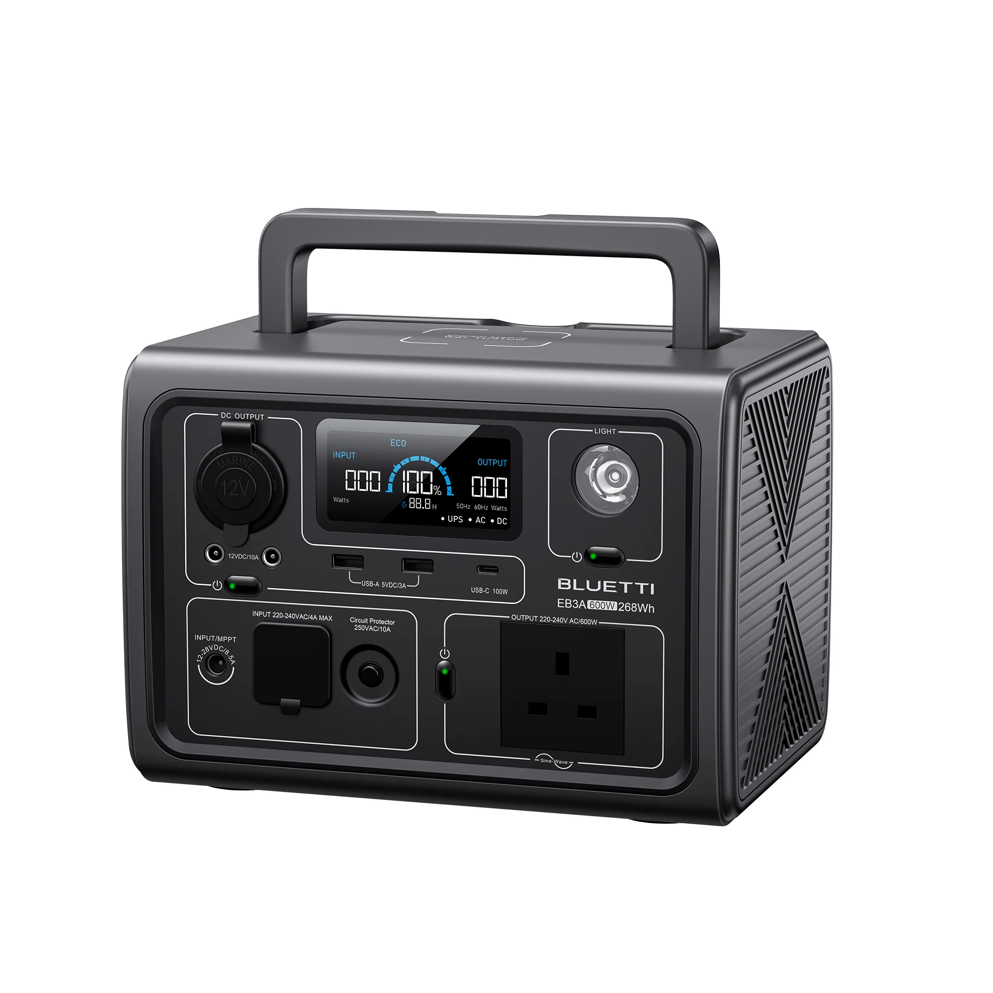 With a 600W inverter and 268Wh battery capacity, the EB3A can power essential devices such as smartphones, laptops, routers, fans, LED lighting, and small electronics during power outages or outdoor activities. Its lightweight and portable design makes it ideal for camping, travel, and emergency backup.
