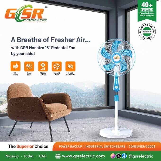 GSR Maestro (Blue) 16-Inch Pedestal Standing Fan – Stylish Cooling Efficiency