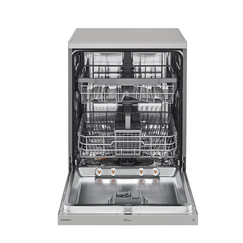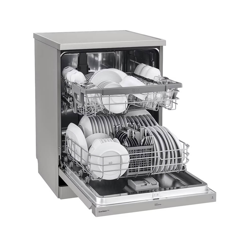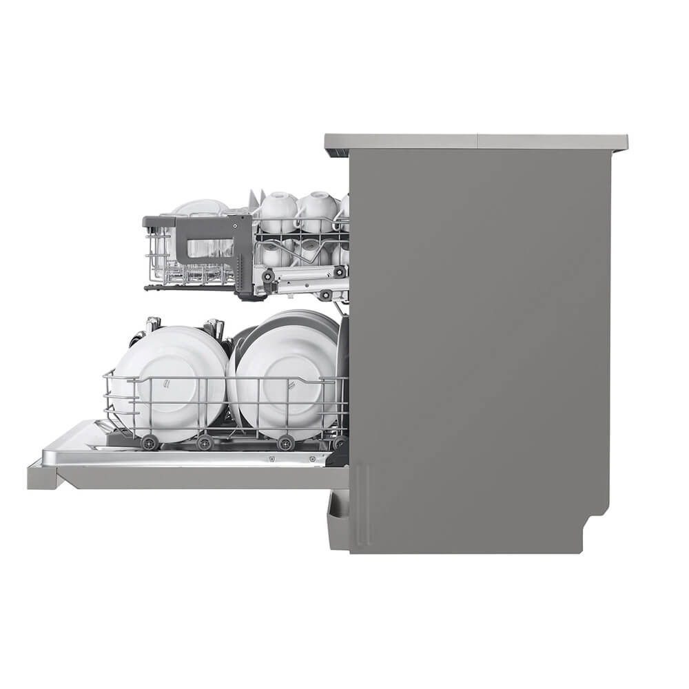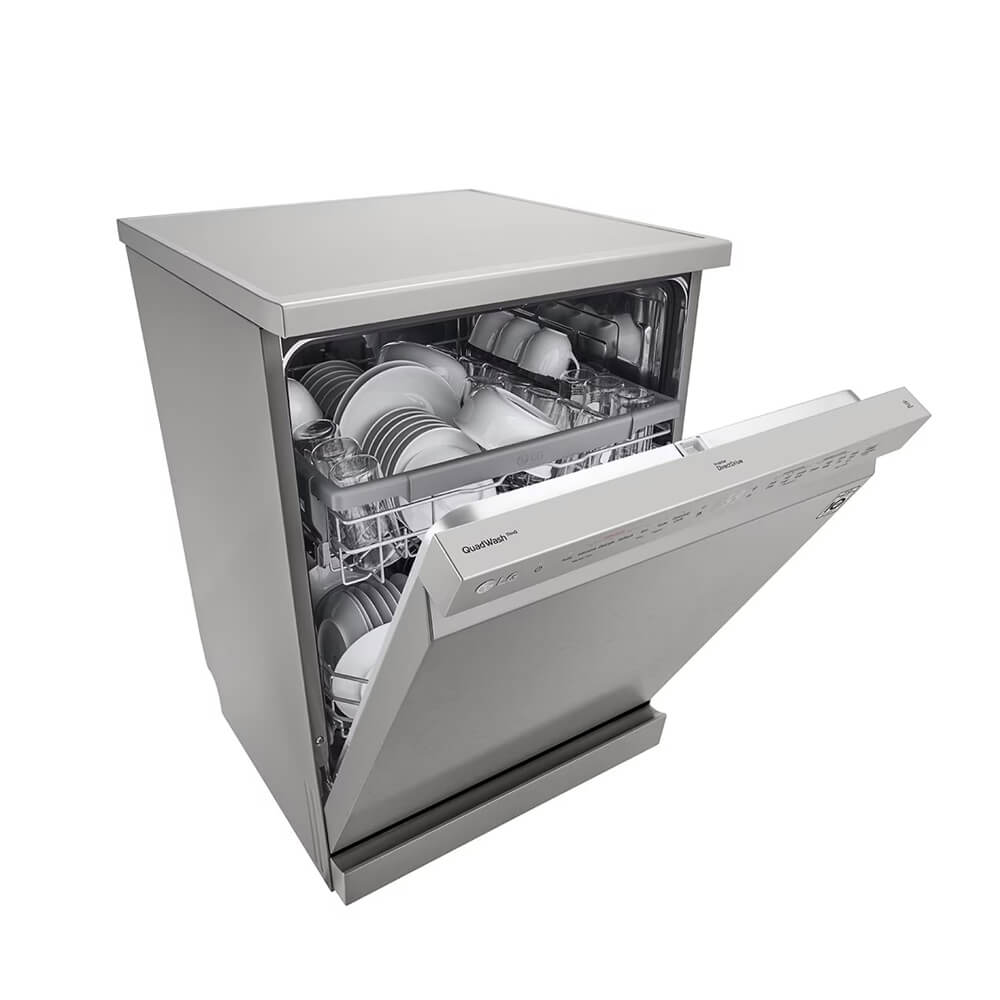 Setup is a breeze—just plug it in and let it shine. Available in platinum silver or black stainless steel, this TrueSteam dishwasher measures approximately 24” x 33.6” x 24.6” (WxHxD), blending seamlessly into any kitchen. The Multi Air Flow ensures even drying, while R600a refrigerant keeps it eco-friendly. With a noise level as low as 44 dB, it’s one of the quietest in its class—perfect for open-plan homes. Whether it’s baked-on pots or delicate glassware, the LG QuadWash Steam Dishwasher delivers pristine results every cycle.