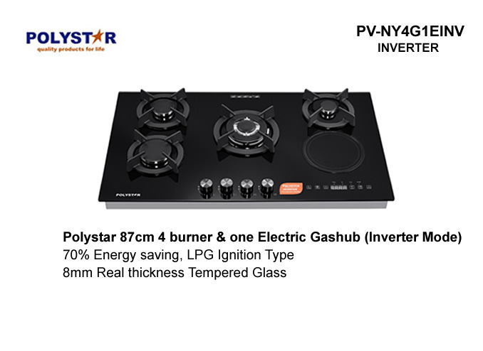 Polystar PV-NY4G1E 87CM 4+1 Tempered Glass Inverter Built-in Gas Hub