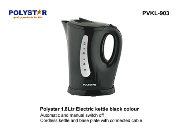 Polystar PVKL-903 1.8Ltr Electric Kettle is a high-quality and efficient electric kettle designed for home and office use. With its large 1.8-liter capacity and rapid boiling function, this kettle provides fast and convenient hot water for tea, coffee, and other beverages.