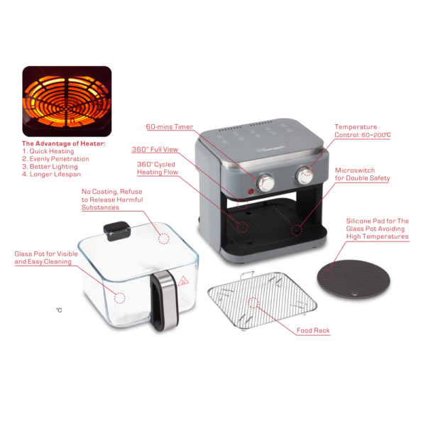 • 6L Large Capacity: Fits a whole chicken or large batches, serving 4-6 people comfortably.
